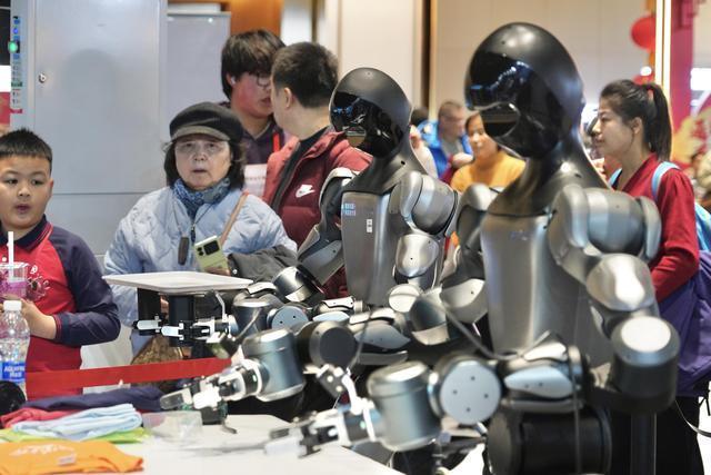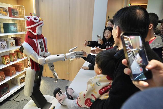 展区另一侧,春晚“实干派”明星——机器人“小盖”同样圈粉无数。零售太空舱搬到庙会,机器人“小盖”一边热情拱手拜年,一边精准抓取货架上的商品,动作稳准快,引来大家争相互动